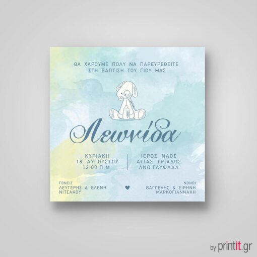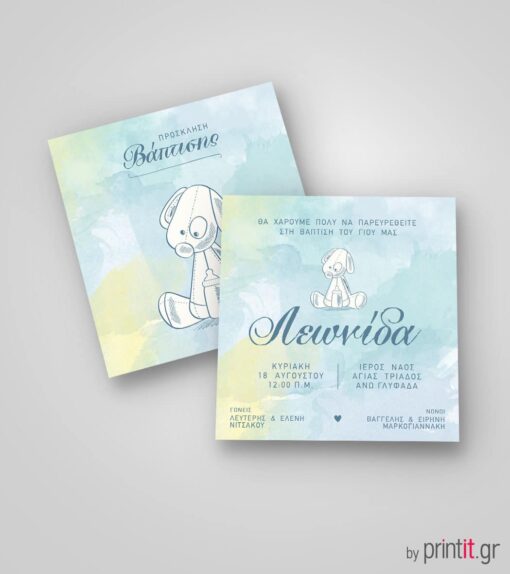 Προσκλητήριο βάπτισης αγοριού 15×15 εκατοστά με το φάκελό του. Κορυφαία ποιότητα εκτύπωσης.