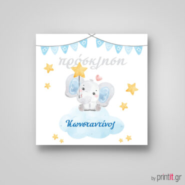 Προσκλητήριο βάπτισης αγοριού 15×15 εκατοστά με το φάκελό του. Κορυφαία ποιότητα εκτύπωσης.