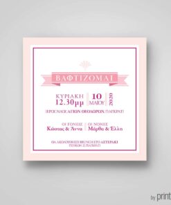 Προσκλητήριο βάπτισης κοριτσιού 15×15 εκατοστά με το φάκελό του. Κορυφαία ποιότητα εκτύπωσης.