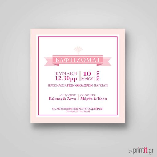 Προσκλητήριο βάπτισης κοριτσιού 15×15 εκατοστά με το φάκελό του. Κορυφαία ποιότητα εκτύπωσης.