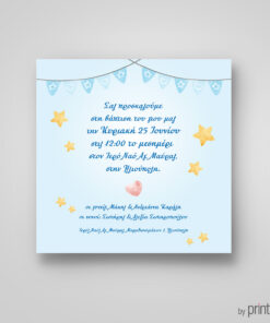Προσκλητήριο βάπτισης αγοριού 15×15 εκατοστά με το φάκελό του. Κορυφαία ποιότητα εκτύπωσης.