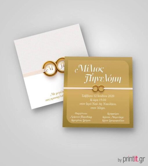Προσκλητήριο γάμου 15×15 εκατοστά με το φάκελό του. Κορυφαία ποιότητα εκτύπωσης.