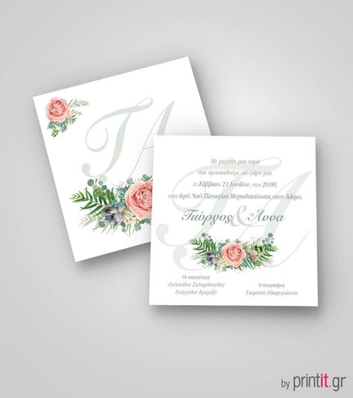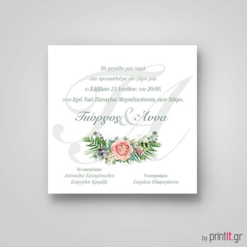 Προσκλητήριο με μπουκέτο λουλουδιών για γάμο